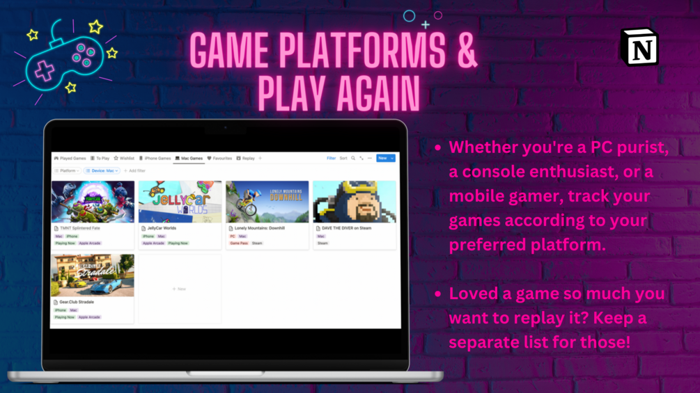 - Track Games to Replay: Loved a game so much you want to replay it? Keep a separate list for those!