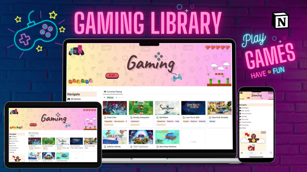 This isn't just a dashboard, it's a comprehensive tool designed to enhance your gaming experience. Here's what it offers: 🎯 Track your Currently Playing Games ⭐ Rate all your Games 🕰️ Get a Timeline of your Played Games 🔖 Save Games to Play Later 📝 Wishlist Games ❤️ Track Your Favourite Games 🎮 Track Games as per Platform 🔄 Track Games to Replay Whether you're a casual gamer or a hardcore enthusiast, this template is designed to cater to your needs, providing a sleek, minimalistic view of your gaming journey.